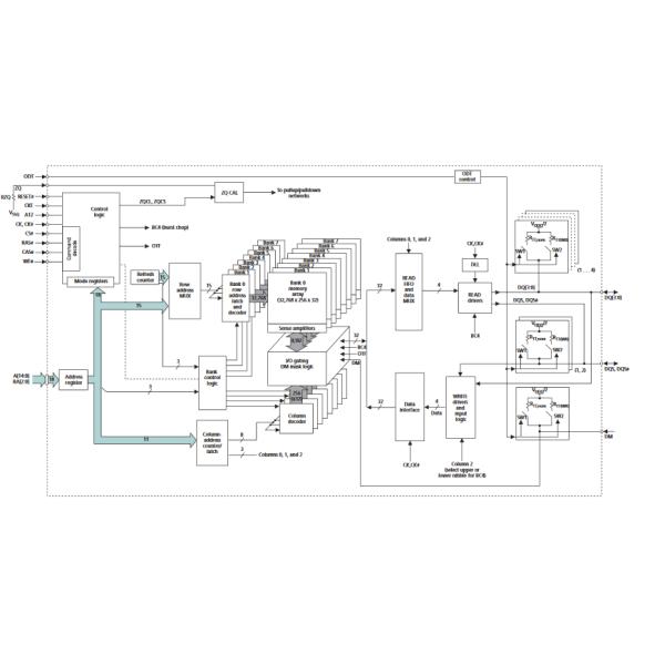 • Nominal and dynamic on-die termination (ODT)for data, strobe, and mask signals